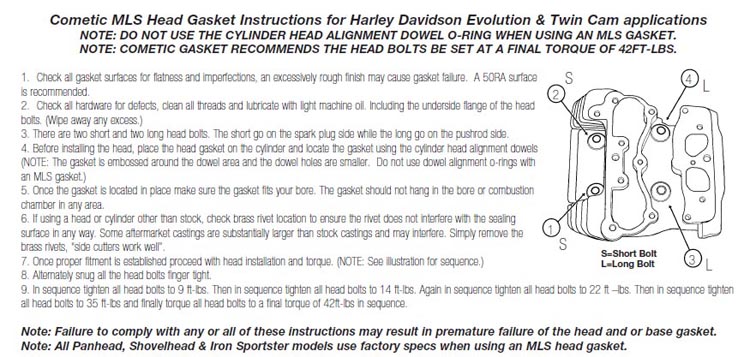 - Torquing your head bolts: Despite the instructions above, some people follow the factory procedure. The head gaskets provided in our engine kits require the alternate procedure described above.