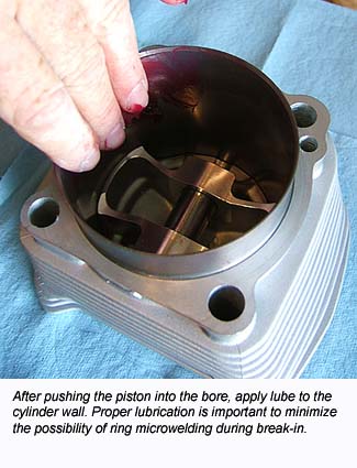 - Smear liberal amounts of assembly lube onto the rings and the piston skirts. Try to avoid getting lube onto the piston above the top ring.